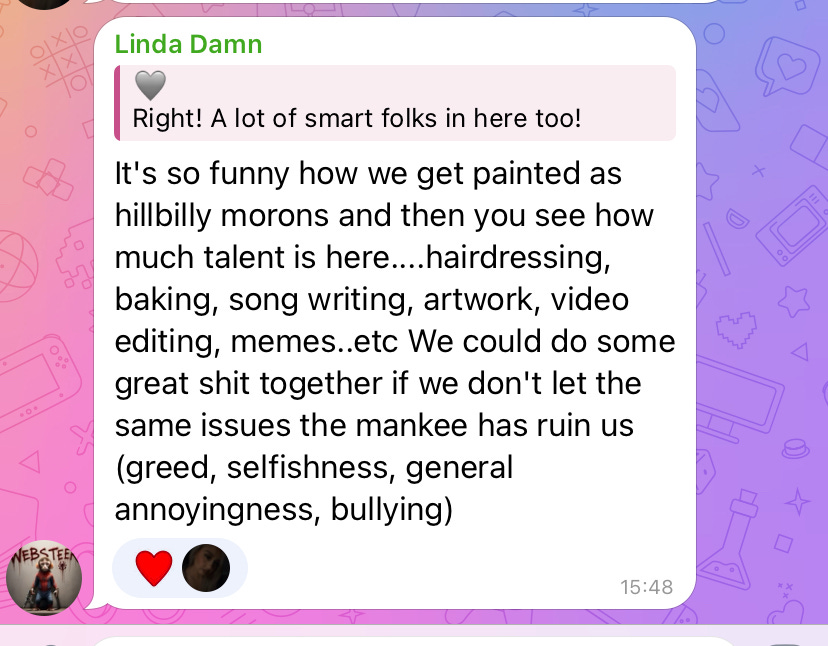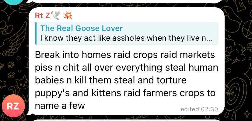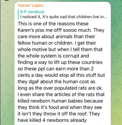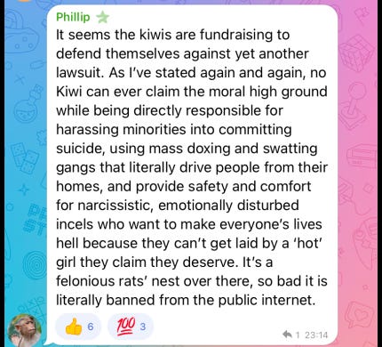 This story began for me on Telegram, seeing the efforts of posters in the Kiwi Farms Million Pity thread inspired me to reach out to them several months ago. Rather than an individual investigative effort, we have seen collaboration from several different corners, some entirely anonymous and working behind the scenes. One prominent Kiwi Farms user described the Million Pity Kiwi Farms thread as a lightning rod of sorts, absorbing the attention of zoosadists, whilst work to compromise them continues entirely beyond their notice.