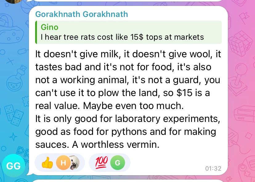 “These little rats overrun towns and ruin lives, they snatch kittens off the street and spread disease. How stupid must you be to defend them.”